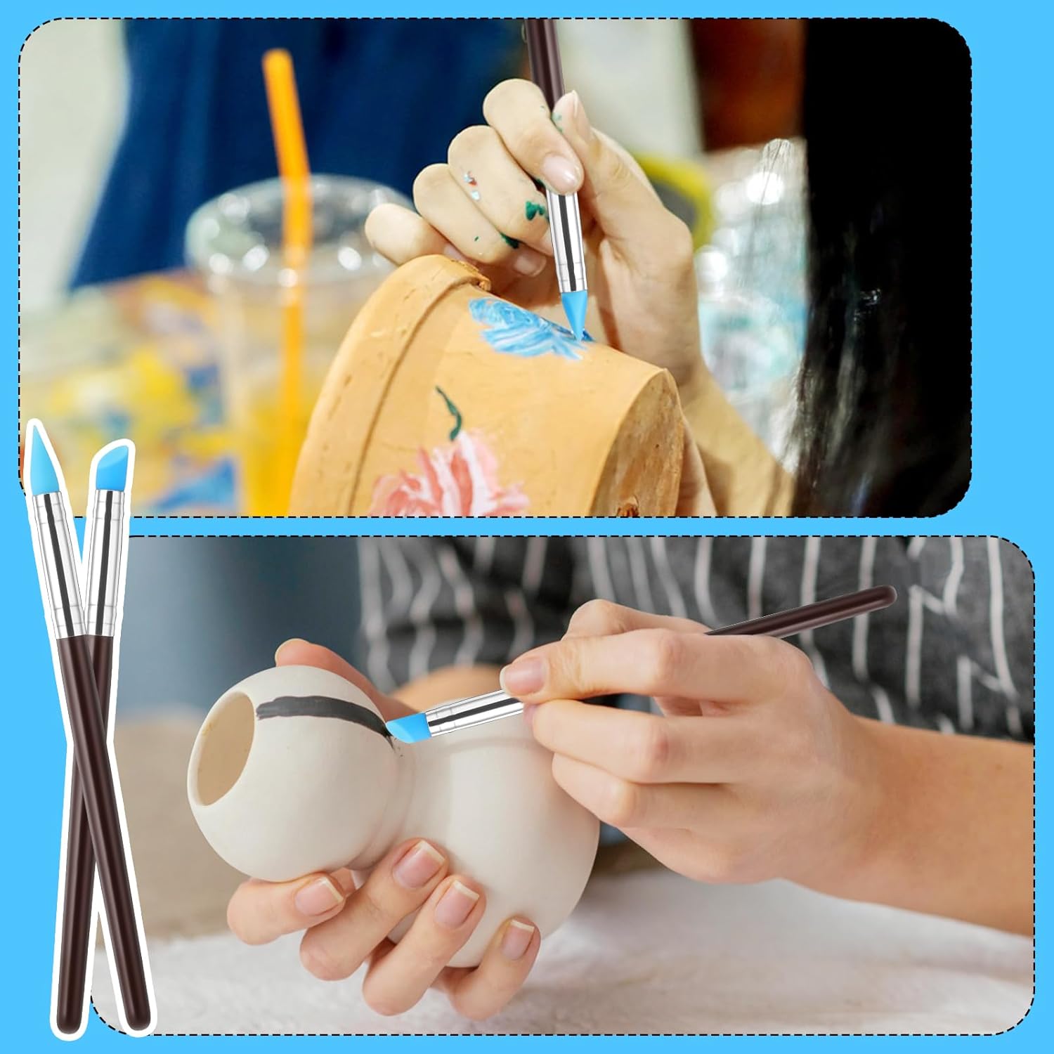 High-Quality Construction: Our epoxy sculpt tools are well-constructed with thicker handles than most paint brushes, ensuring durability. The tips are securely attached to the metal holders, preventing ceramic tools from falling out. The silicone tool is made of stainless steel, resistant to etching, while the pen handles are crafted from spray-painted wood with silicone tips.