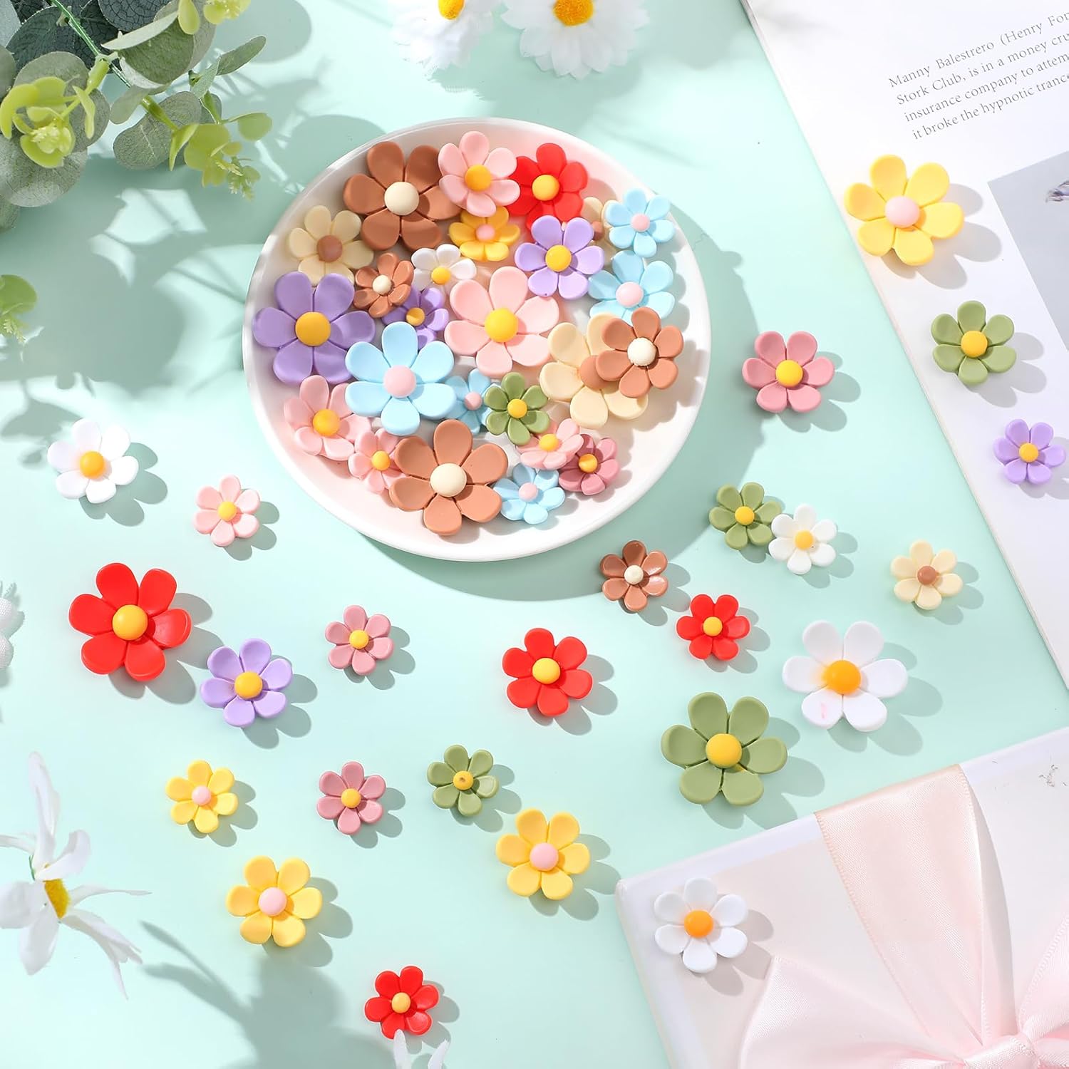 Safe Material: the flat back daisy flowers are made of quality resin material, non-toxic and odorless, safe and durable, not easy to fade, washable, and can be applied for a long time; Warm reminder: our products are not edible